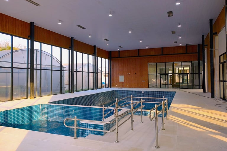 A protensão desempenhou um papel crucial nesse projeto, proporcionando uma estrutura robusta e duradoura, essencial para um espaço destinado ao acolhimento e bem-estar dos idosos. Uma das características mais marcantes dessa obra foram os vãos maiores, especialmente na sala de hidroginástica e na praça de alimentação. Esses espaços amplos exigiram soluções estruturais precisas, onde a protensão foi fundamental para garantir que o edifício suportasse as cargas de forma eficiente, sem comprometer a integridade ou o conforto das áreas internas.